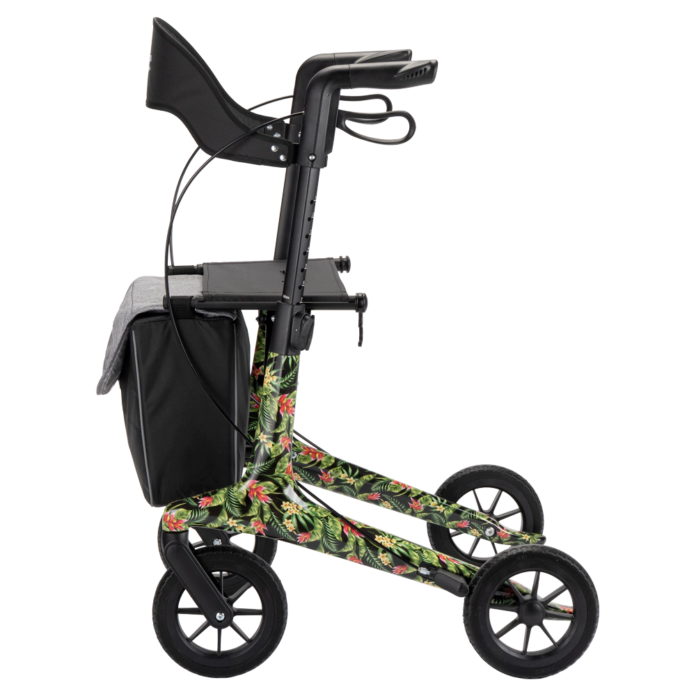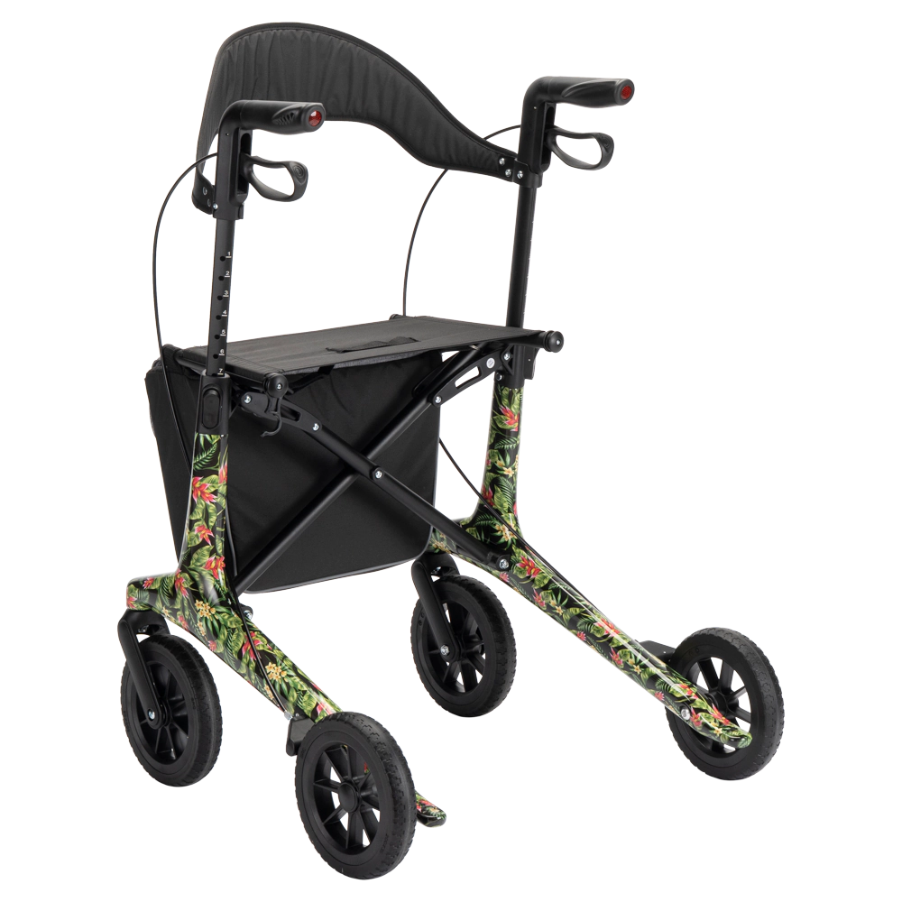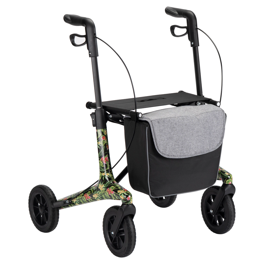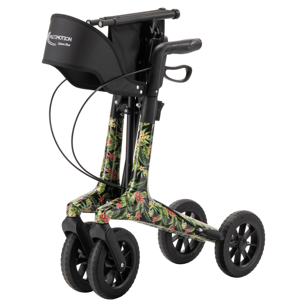 De MultiMotion Carbon rollator combineert een elegant design met ultiem gebruiksgemak. Dankzij het lichte carbon frame is hij bijzonder wendbaar en eenvoudig te hanteren. Standaard uitgerust met een afsluitbare boodschappentas, een comfortabele (afneembare) rugband en twee stoephulpen. De handgrepen zijn met een drukknop makkelijk in hoogte te verstellen. Opvouwen gaat eenvoudig door de zitting omhoog te trekken, waarbij de rollator eventueel is te vergrendelen in opgevouwen stand. De hoogwaardige afwerking en verfijnde details zorgen voor een luxe uitstraling, terwijl de softwielen optimaal rijcomfort garanderen.