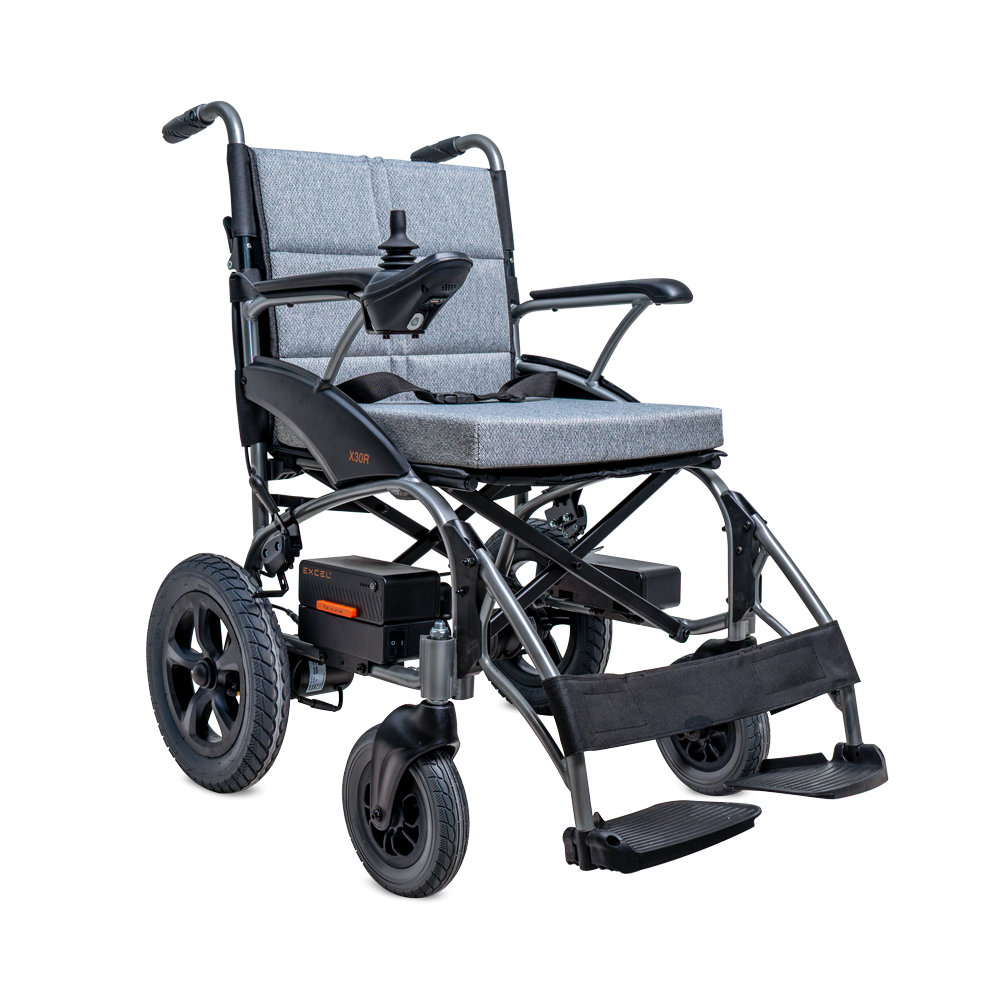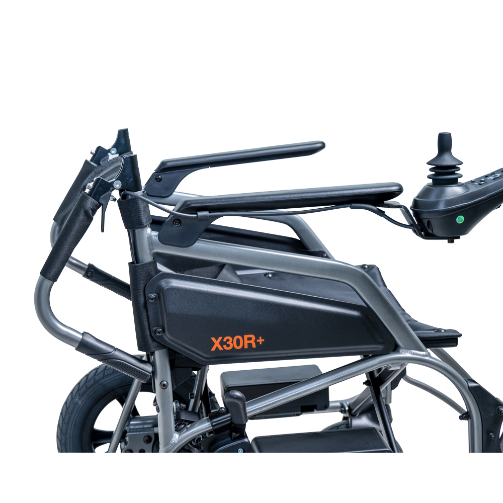 De Excel X30R+ bouwt voort op de flexibiliteit van de X30R en voegt daar extra gebruiksgemak aan toe. Met een totaalgewicht van minder dan 17 kg en een compact opvouwbaar ontwerp past de rolstoel moeiteloos in de auto of het openbaar vervoer. De uitneembare lithiumbatterij kan los worden opgeladen, zodat u niet afhankelijk bent van een stopcontact in de buurt van de rolstoel.