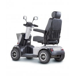 De gebruikte scootmobiel Afriscooter C heeft een mooi design, een krachtige motor en is zeer comfortabel tijdens het rijden. De orthopedische zitting kan 360 graden draaien wat het instappen makkelijk maakt. De stuurkolom is naar eigen wens verstelbaar en is zeer wendbaar. Een comfortabele rit is gegarandeerd dankzij de volledige vering en schokdempers. Makkelijk manoeuvreren in winkels en smalle doorgangen dankzij de kleine draaicirkel. Een goede, heldere verlichting aan de voor- en achterzijde inclusief remlichten. Uitgevoerd met 2 spiegels en een handige boodschappenmand. Kleur: metallic zilver. Lengte: 132 cm. Breedte: 67 cm. Hoogte: 126 cm. Max. snelheid: 15 km/ h. Actieradius: tot 40 km. Diameter van de luchtbanden: 30 cm. Gewicht compleet: 122 kg. Gewicht zonder accu's (2x 12V- 50Ah- standaard): 93 kg. Incl. een lader. Max. gebruikersgewicht: 150 kg. Door middel van een grotere accukap: meerprijs met accu's van 70AH of 85AH (laatste; actieradius van 50 km.) leverbaar.