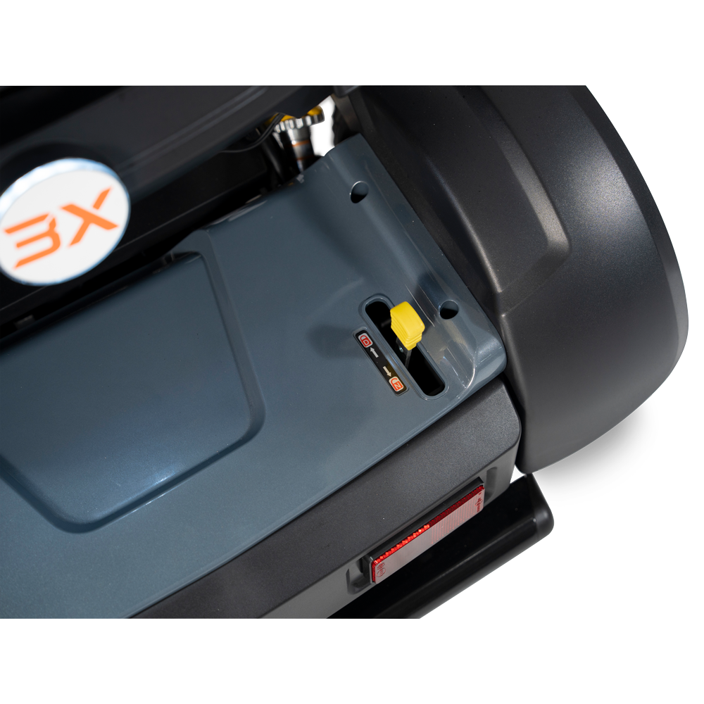 Veiligheid staat centraal. De 3X is standaard uitgerust met een zitsensor die detecteert of de stoel bezet is, en een noodstopknop voor extra gemoedsrust. De keyless bediening werkt met een RFID-tag die enkel en alleen aan uw scootmobiel is gekoppeld. Elke tag is uniek, waardoor onbevoegd gebruik wordt uitgesloten. Zo weet u zeker dat niemand anders de scootmobiel kan starten, en heeft u altijd zelf de volledige controle.