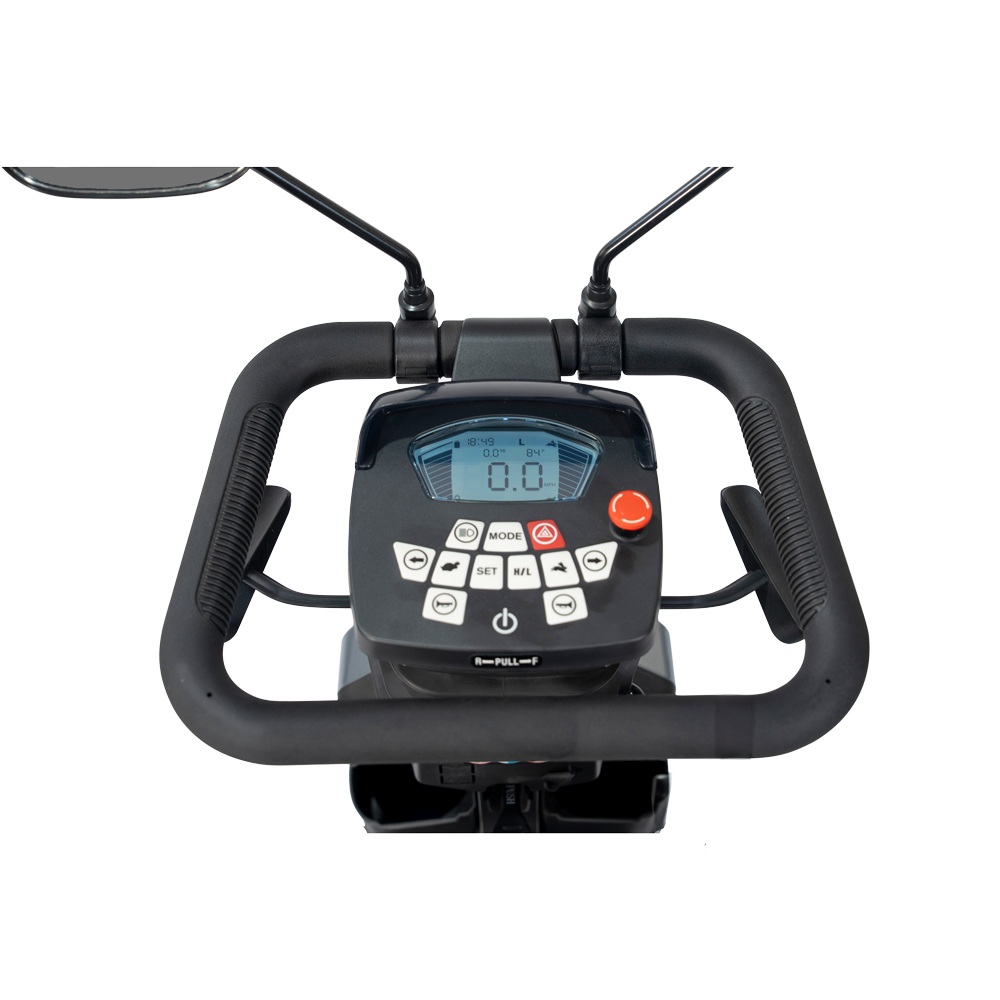 Bovendien voorkomt de slimme snelheidsbegrenzer dat u te snel een bocht neemt: de scootmobiel verlaagt automatisch de snelheid voor meer stabiliteit en veiligheid.