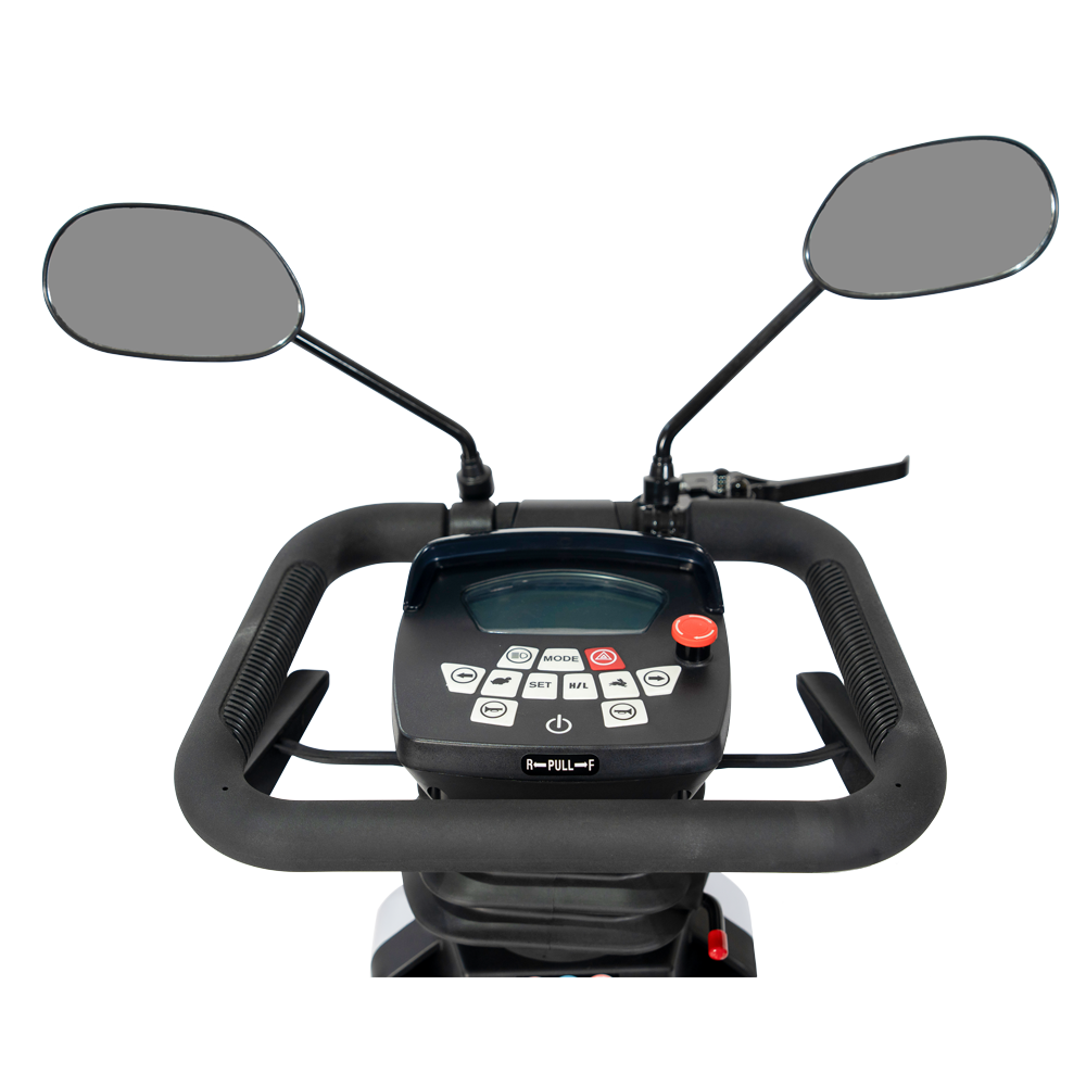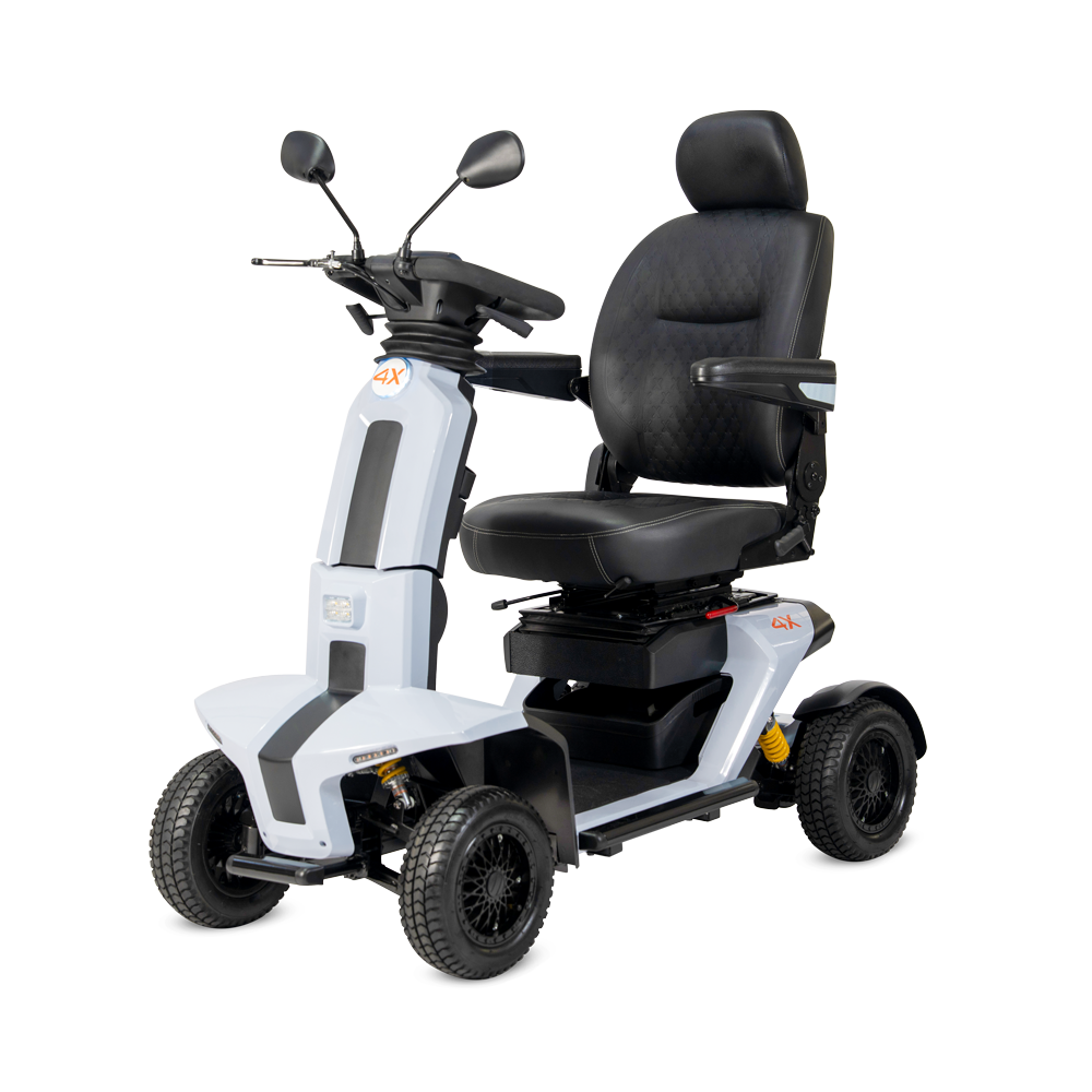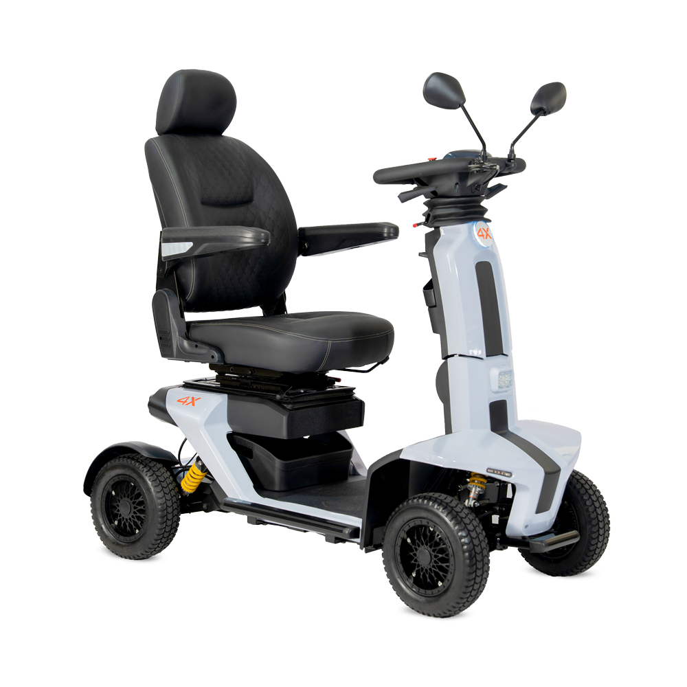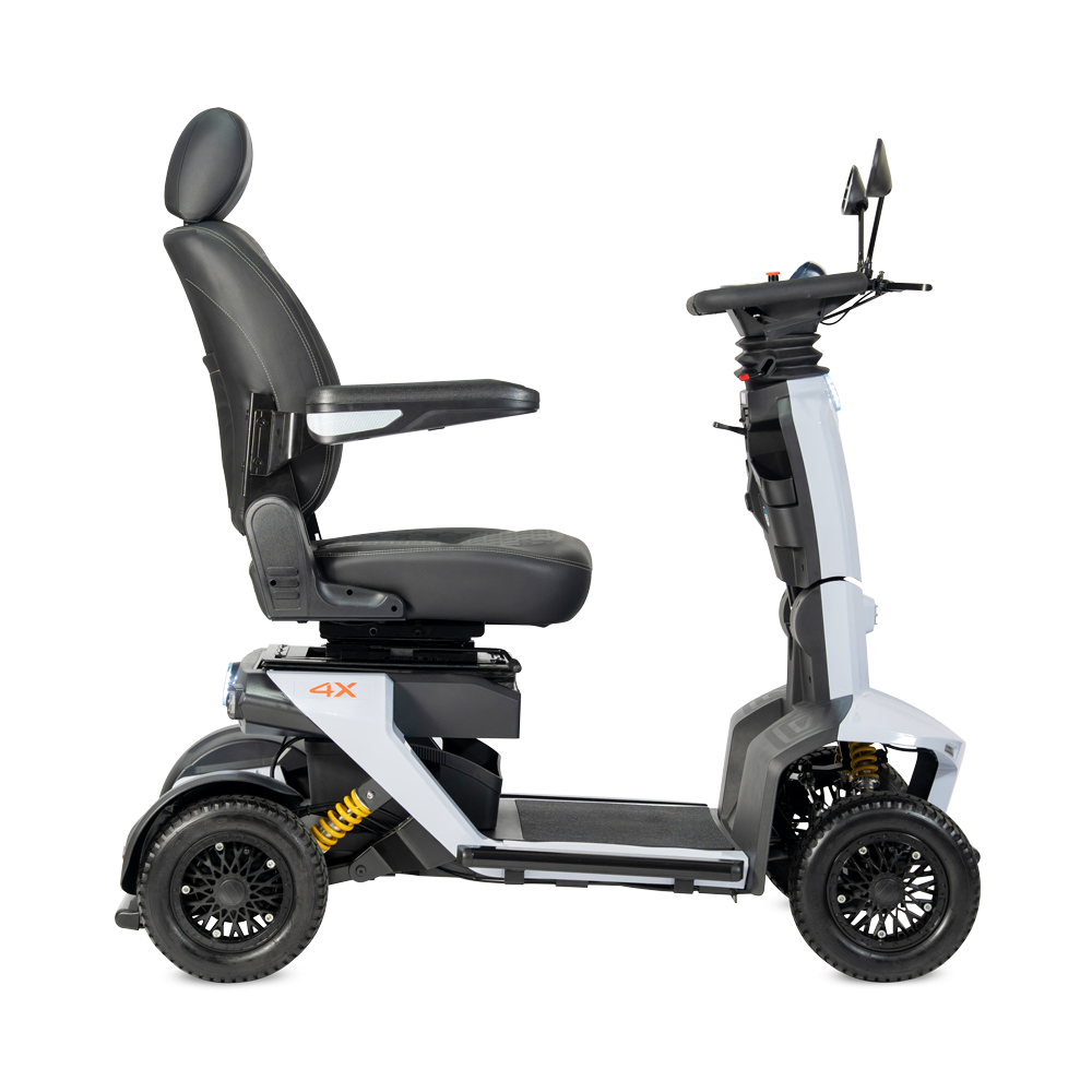 De bredere stuurkolom geeft extra grip en kan naar voren of achteren worden versteld voor de ideale rijhouding. Daarnaast beschikt de 4X+ over dubbele bediening, waarbij u zelf kiest of u de bediening aan de zijkant of aan de onderzijde gebruikt. Deze combinatie biedt maximale controle en gebruiksgemak, helemaal afgestemd op uw persoonlijke voorkeur.