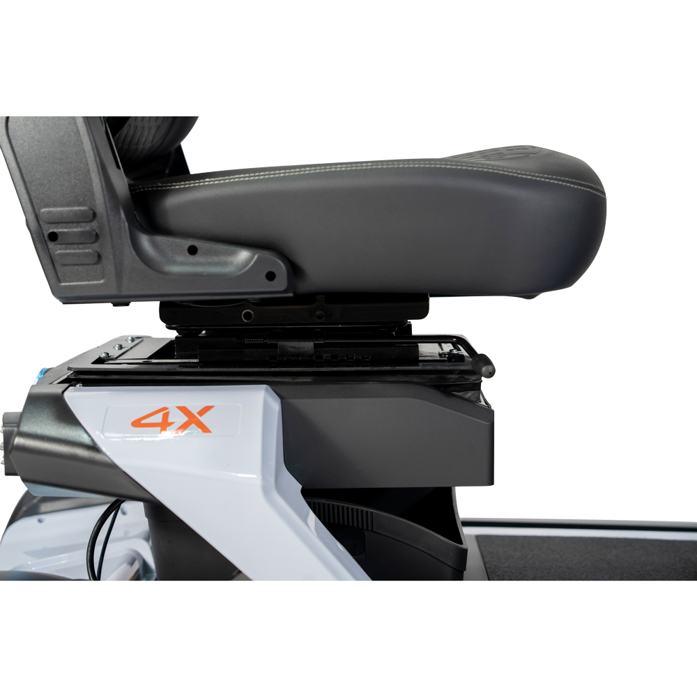 Op het gebied van comfort biedt de 4X+ alles wat u nodig heeft. De stoel is verstelbaar in hoogte, hoek en positie, voorzien van diepe contouren en extra zijsteun, en heeft een draaifunctie voor eenvoudig in- en uitstappen. Ook de armleuningen zijn in hoek verstelbaar met een draaiknop, zodat u altijd ontspannen en goed ondersteund zit.