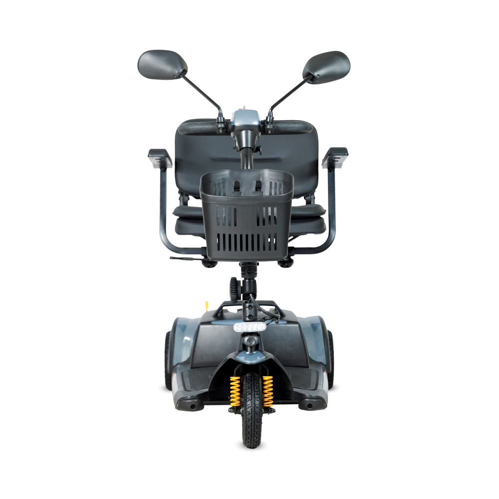 De actieradius bedraagt tot 22 km, ruim voldoende voor dagelijkse ritten. De stoel is draaibaar en afneembaar, de rugleuning is neerklapbaar en de armleuningen zijn in breedte verstelbaar. Ook de stuurkolom is verstelbaar, zodat u altijd een prettige rijhouding kunt instellen.