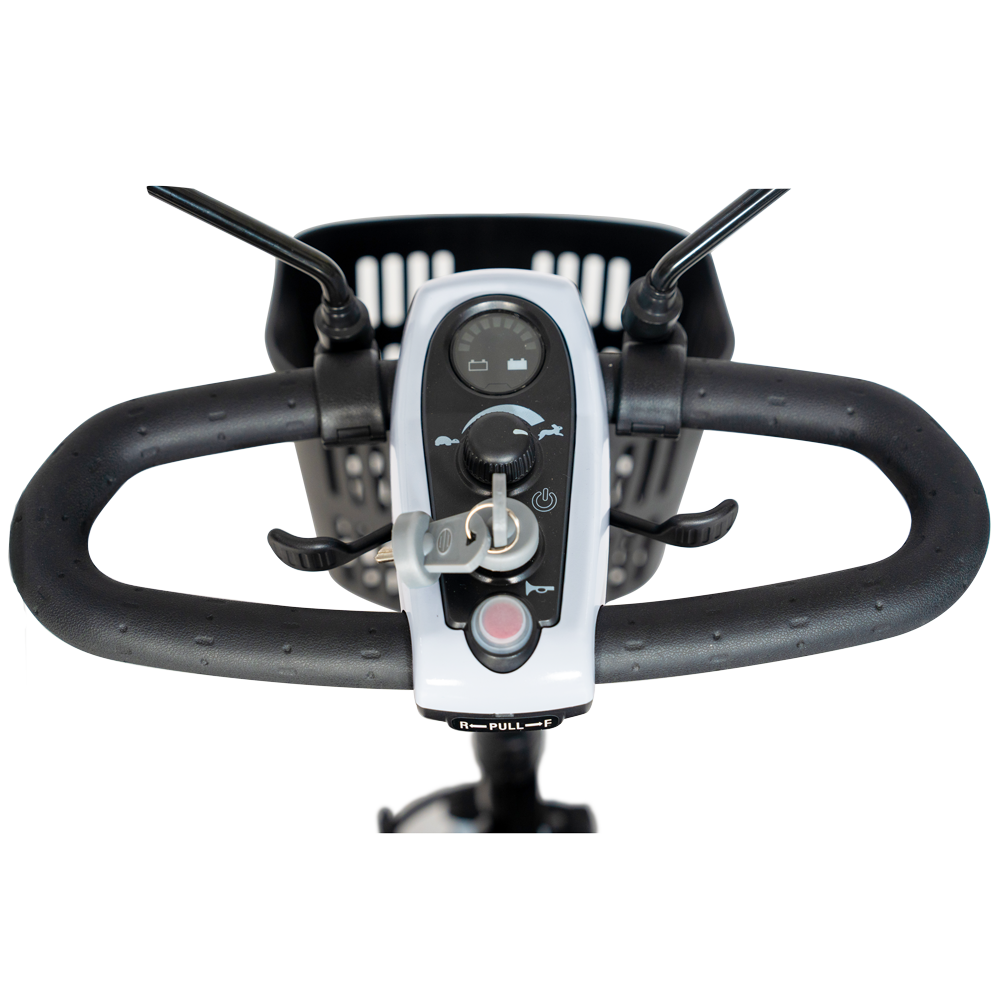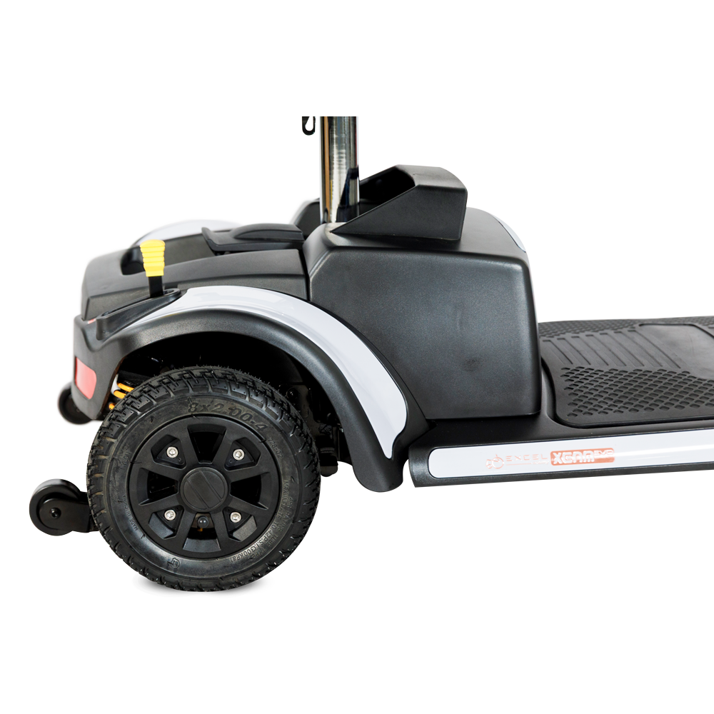 De Excel Xena EVO 3 is ontworpen voor wie maximale wendbaarheid en gebruiksgemak zoekt in een compacte travelscooter. Dankzij het ontwerp met drie wielen heeft deze scooter een bijzonder kleine draaicirkel, waardoor hij zich soepel laat sturen in krappe ruimtes, zoals winkels, smalle paadjes of gangen in huis. Dat maakt de Xena EVO 3 bij uitstek geschikt voor wie vaak binnen of in drukke omgevingen rijdt.