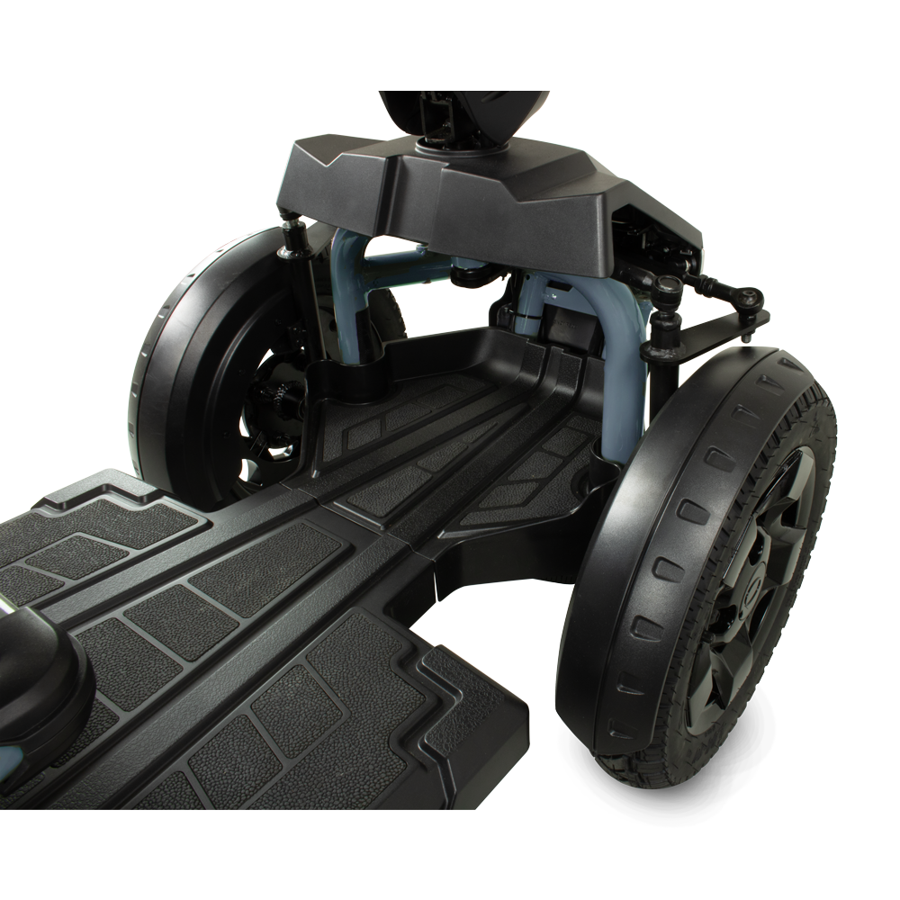Ook op het gebied van veiligheid en gebruiksgemak is de Supernova EVO compleet uitgerust. LED-verlichting zorgt voor goede zichtbaarheid, terwijl de bochtsnelheidsbegrenzer extra zekerheid biedt tijdens het nemen van bochten. Met de duurzame LiFePO4-accu inclusief app-monitoring, een praktische USB-aansluiting en ruime mand voor opbergmogelijkheden is deze scootmobiel klaar voor dagelijks gebruik. Het frame van de Supernova EVO is opgebouwd uit krachtige buisconstructies in plaats van gesloten panelen. Dit zorgt voor een open, dynamische uitstraling en versterkt het sportieve karakter van het model.
