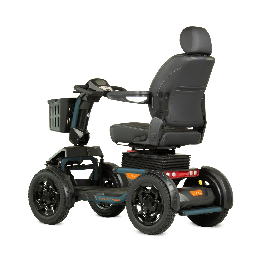 De Excel Supernova EVO Launch Edition is ontworpen voor wie geen concessies wil doen aan comfort en prestaties. Met een topsnelheid van 20 km/u en een krachtige motor die hellingen tot 12° aankan, biedt deze scootmobiel betrouwbare ondersteuning bij zowel dagelijkse ritten als langere trajecten. De grote 16” luchtbanden zorgen voor uitstekende stabiliteit en rijcomfort, ook op minder vlakke ondergronden.